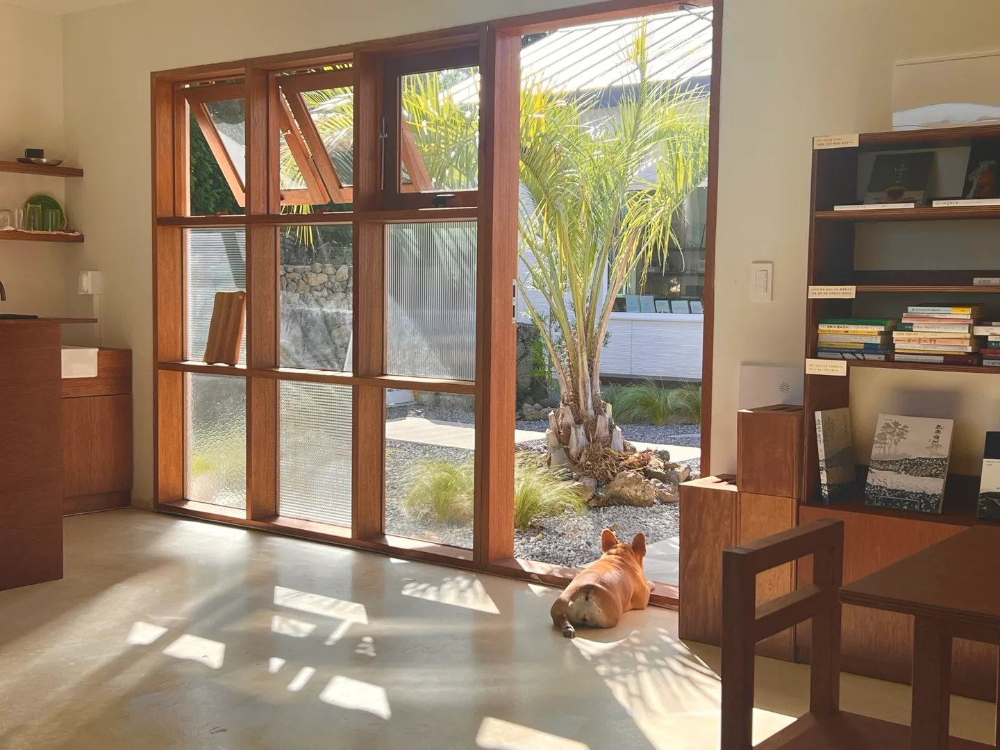 공간이 꽤 넓고 책의 종류도 다양해요. 무엇보다 제주 바람이 살랑거리는 돌담뷰를 바라보며 책을 볼 수 있는 게 좋았어요. 이곳에서 보낸 시간을 단어로 표현한다면 ‘평안’과 가깝지 않을까 싶네요. 서점 앞 마당이 있어서 아이들과 함께 가도 좋은 곳이에요. 제주에 가실 일이 있다면 꼭 한 번 들러보시길. 다정한 책방지기님을 만나거든 ‘필사하리니 멤버’라고 꼭 말씀해 주세요. 아주 맛있는 핸드드립 커피 한 잔을 주실지도…